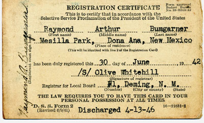 | Jun 30, 1942 | Raymond's Registration Certificate | |