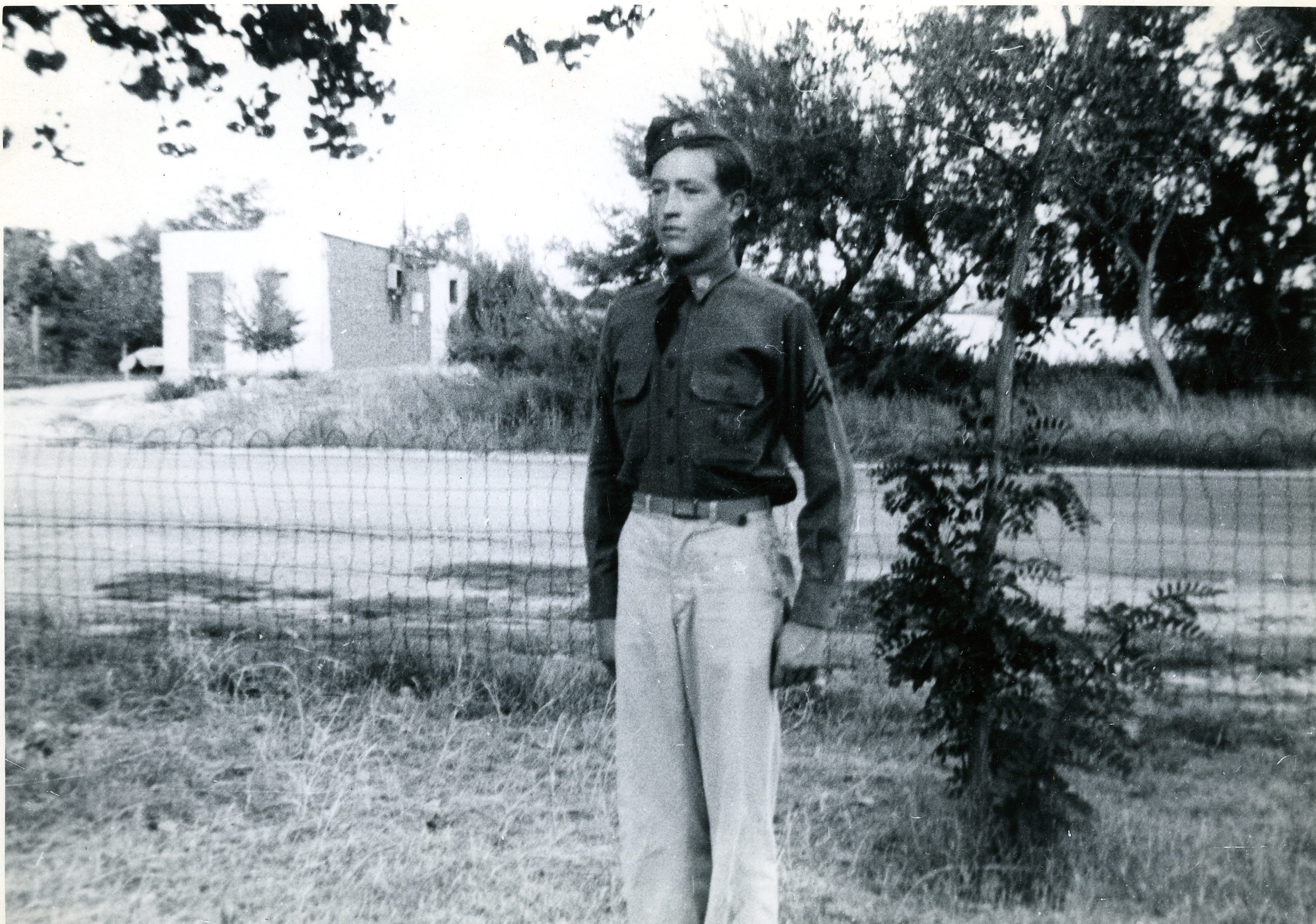 Haven't had any more shots since those three. I don't know just how I stand on that score - but I'm sure that they'll see to it I get all of them! I hear they have a good photographer over at the main post. I'd like to get over there next week-end, or maybe go to town & get "shot". I'd also like to buy myself a cap - remember the one we tried to sew up? I'm the only soldier in Ft. Ben with one like it!