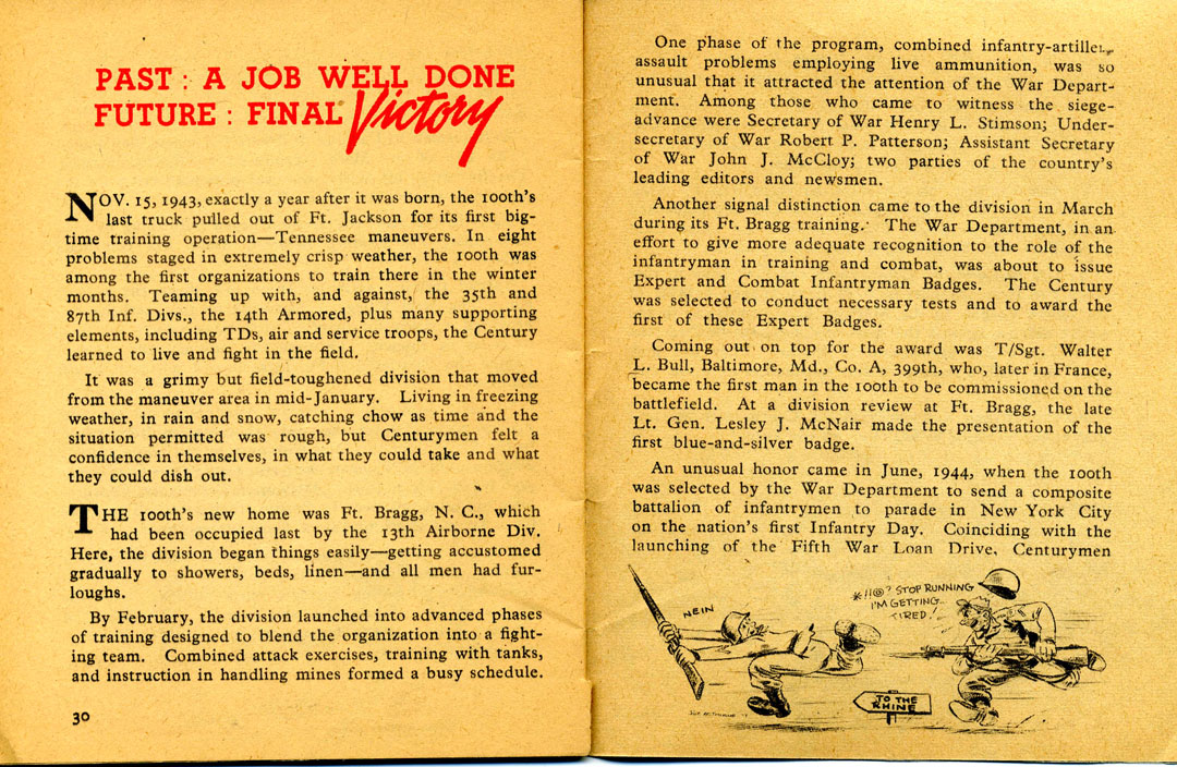 | Nov 15, 1943 - Oct 1944 | "The Story of the Century" booklet - About basic training for 100th Infantry Division-----> | |