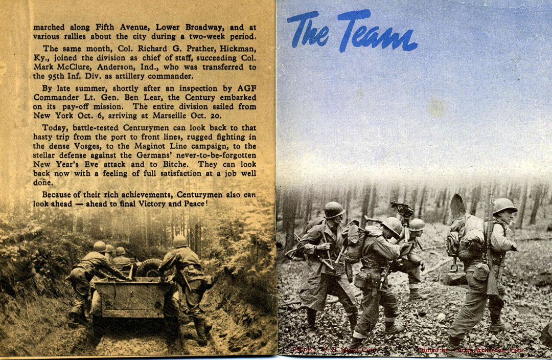 | Nov, 1942 to Jul, 1942 | "The Story of the Century" booklet; pages about the birth of the 100th Infantry Division------> |