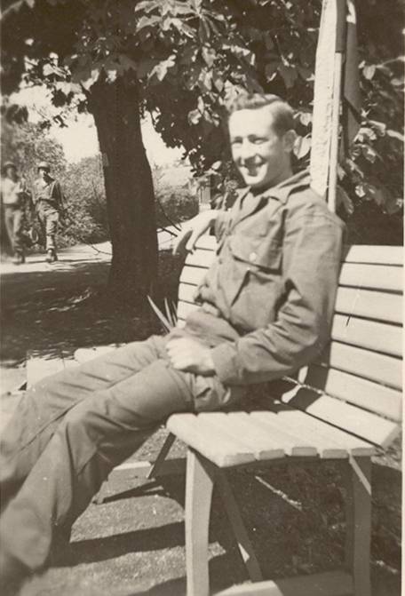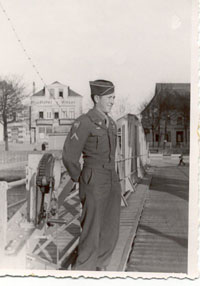 Tho' I usually wait 'till Sunday eve to do my writing, I'll do it on Sat. this time, because the time is just right for letter writing. It's raining out today, so we go the aft. to ourselves. I just got out of a nice tub of hot suds, and I feel like a million. The radio is playing some solid numbers, and I'm munchin' an O'Henry candy bar. And to top it off, the first sgt. just came up, slapped me on the shoulder, and says "Since you're next in line for a pass, I'm slating you for Paris the 31st - that's next Tuesday." "Paris?", I says, "I been there already". "Well", he says, "You have to take what you can get these days, ya know." "Okay, Sarge, I'll go.", I says. So I'm gonna see gay Paree again - har! Well, I should get more out of it this trip, than I did last time, because I'll know the "ropes" when I get there.