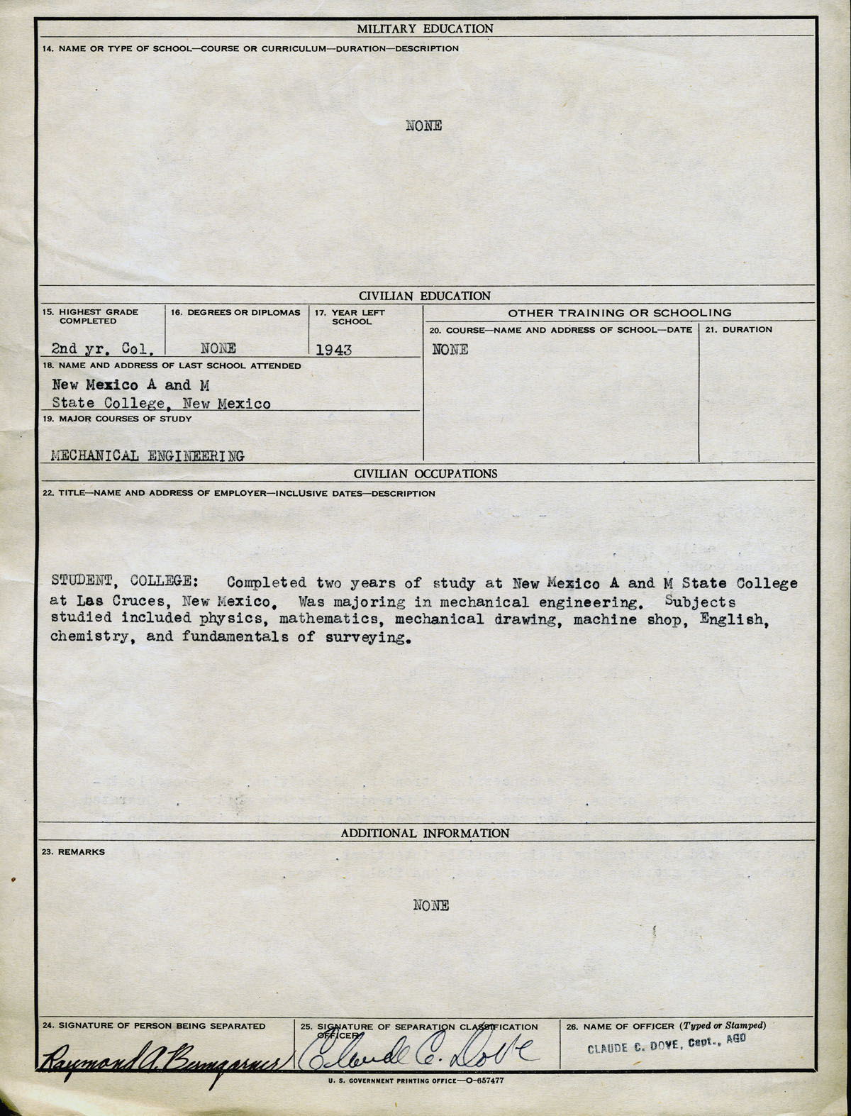 | Jan 31, 1946 | Furlough | |