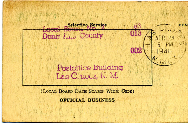 | Apr 10, 1946 | Journal – Arrive Ft. Bliss Separation Center 7:30 am. | |